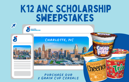 Purchase our 2 Grain Cup Cereals from 6/15/2025-4/30/2026 and enter for a chance to win! 8 winners (2 per sales Zone) will be randomly selected and will earn a trip to the 2026 School Nutrition Association Annual National Conference.Enter the Sweepstakes →